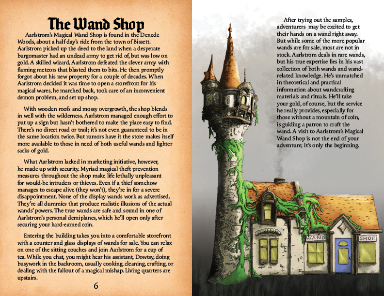 Welcome to Aarlstrom’s Magical Wand Shop, a full-color collection of over two dozen wands to pick for your next adventure.